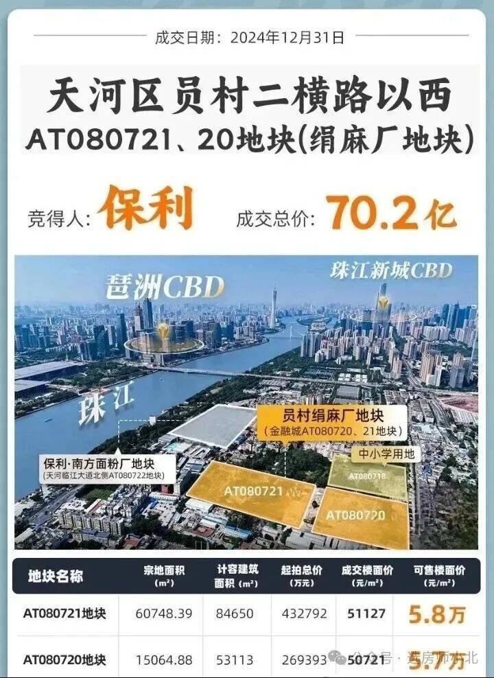 2024年12月31日,保利以总价70.2亿元底价拿下绢麻厂地块,分为两个地块,AT080720地块在北面,楼面价为5.07万/㎡;AT080721地块在南面,楼面价为5.11万/㎡。