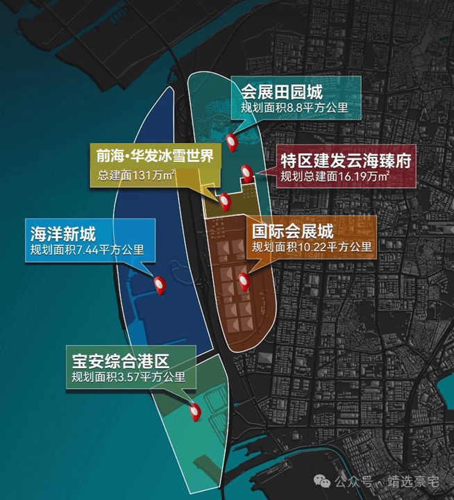 前海合作区扩大到约120.56平方公里,会展新城及海洋新城片区凭借双核规划优势,总投资超千亿元将直接撬动连通前海万亿规模经济带,将成为粤港澳大湾区新的经济增长极。