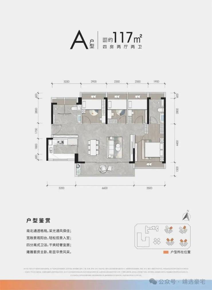 稀缺南北通透、大横厅阔绰4房,约6.6米阔景阳台,四分离卫生间