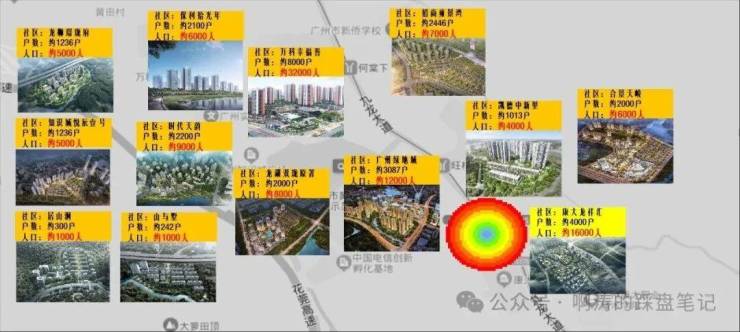 周边3km汇聚13个社区,总户数约3.3万,总人数超12万人