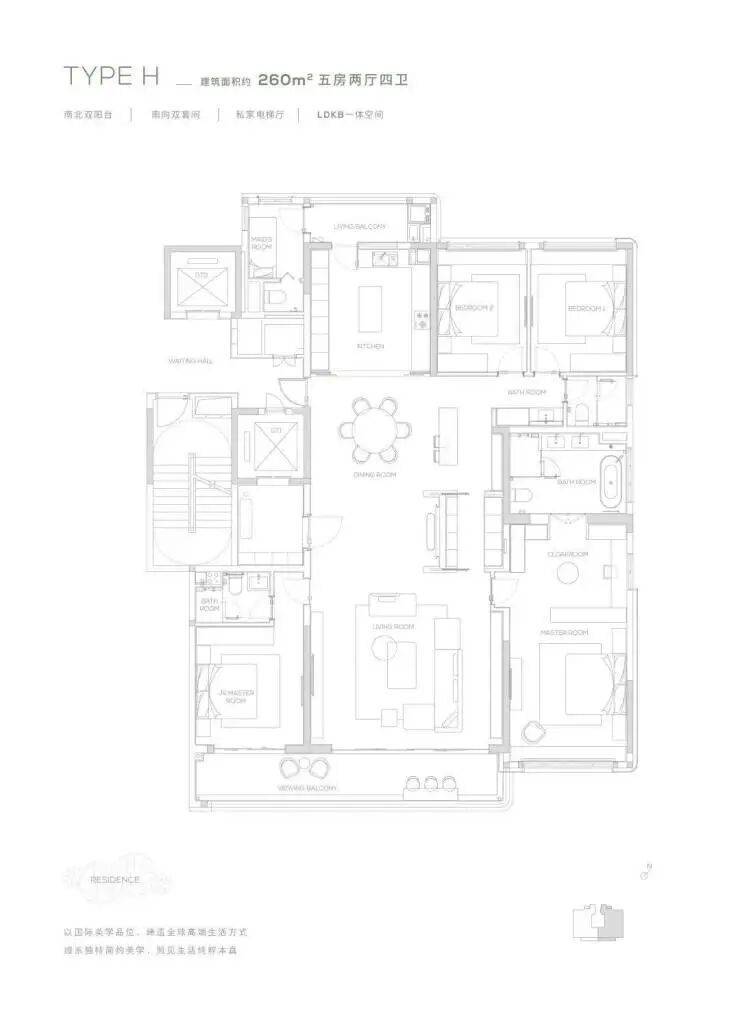 【260㎡户型】南北双阳台-南向双套间-私家电梯厅-LDKB一体化