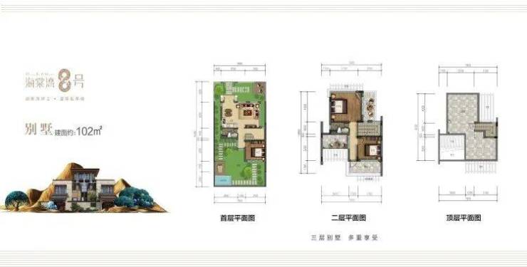 A别墅(70年产权/独享天地/前庭后院/温泉入户)建面102㎡,实得260㎡三房两厅三卫