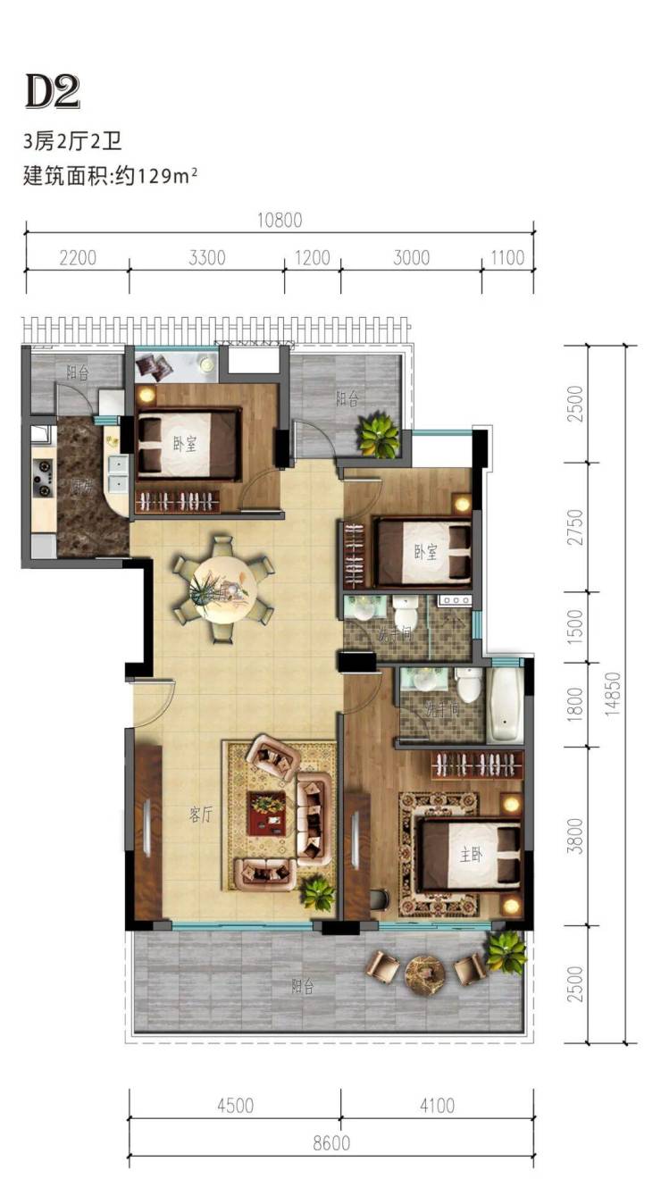 臻品楼王 (板楼/南北通透/温泉入户/中轴景观)建筑面积约:130-138㎡ 3+1房两厅二卫