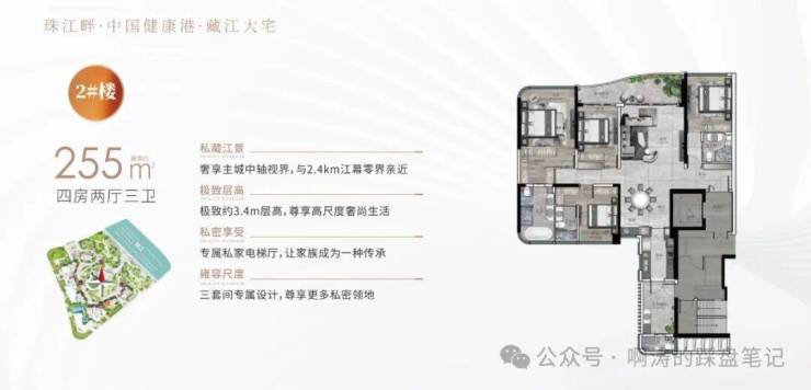 ● 户型:建面约233-285㎡四至五房,极致3.4-3.6m层高,14-40层高层、超高层