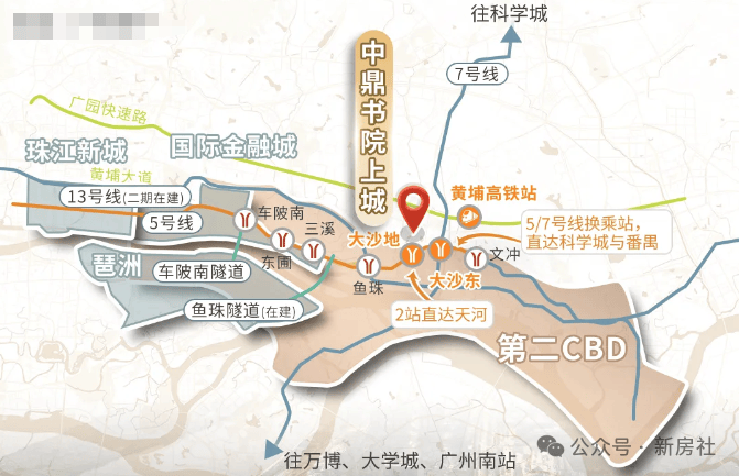 5号线大沙地站距离约800米,7号线二期大沙东站已开通,13号线裕丰围站也在规划之中,这三个地铁站都非常重要,构成了黄金3地铁交汇