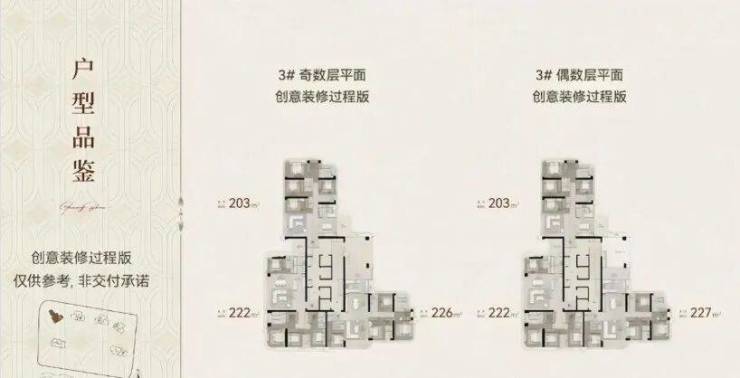 3号楼:50层,约203-226㎡户型,已拿证,4梯3户