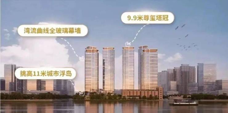 9.9米尊玺塔冠,还有一座全市首创,挑高达11米的城市浮岛。
