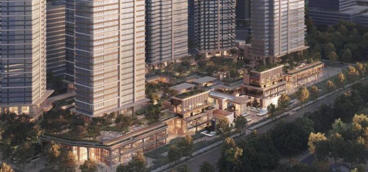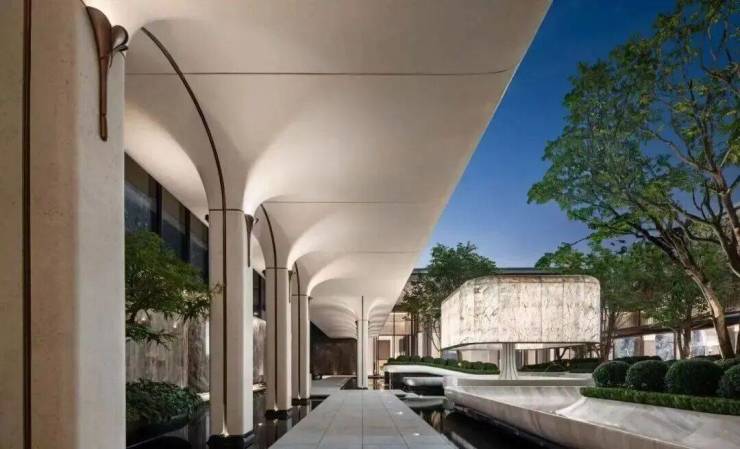 隔绝城市喧嚣。11米抬高的“超级底盘”,把车库、商业街区藏在下方,哪怕是项目“一楼”,