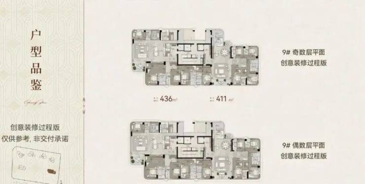 9号楼:37层,约411-436㎡户型(一线头排望江),2梯2户