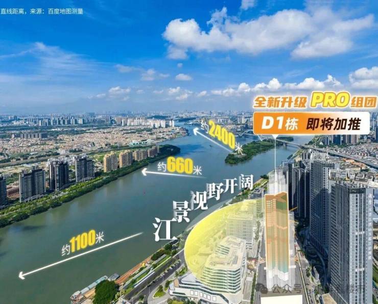 距珠江仅 200 米,高区享 2400 米一线南向江景,低区也有侧面江景,楼下就是江边绿道,江景体验感远超周边楼盘,卖得比熙悦江湾更火也在意料之中。