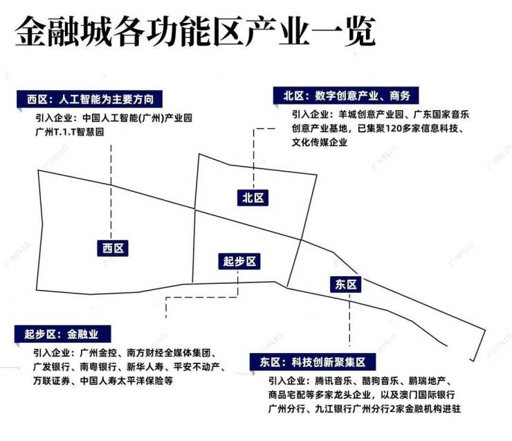 根据规划,金融城北区将作为湾区金融+科技产业融合创新发展的示范区,目前,北区已集聚120多家信息科技、文化传媒企业,像是酷狗、荔枝FM、网易等企业已进驻,孵化出9家上市公司,年产值超过300亿。