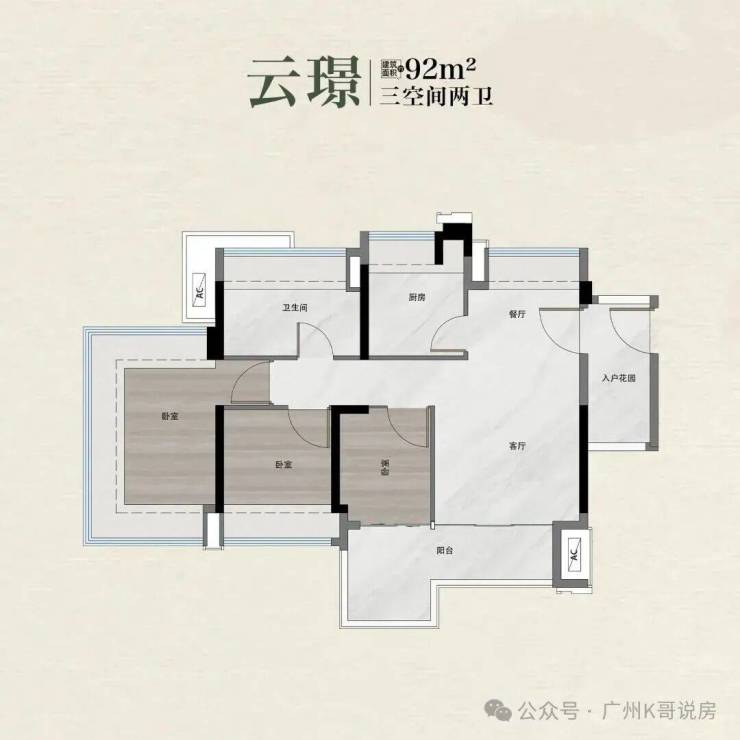 3栋塔楼,包含建面89㎡、92、99㎡户型,通过阳台延伸空间感,贴合了年轻家庭对总价和功能性的双重诉求。