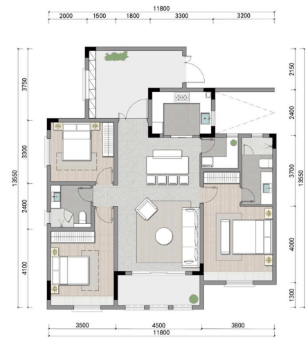 ·一体化客餐厨:约4.2米面宽,30.66㎡,布局灵活多变;