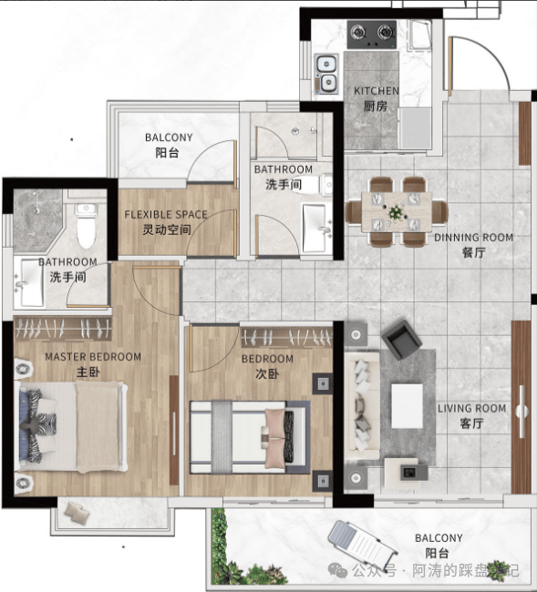 2⃣A户型:117㎡,百变四房两厅两卫🔝
