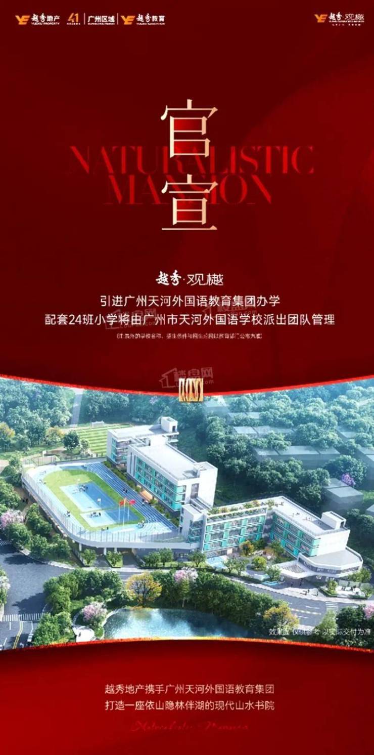 项目自配15班幼儿园及24班小学,引入广州天河外国语教育集团合作办学,该集团旗下学校中考成绩连续多年位列全市前五。