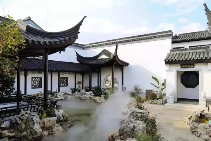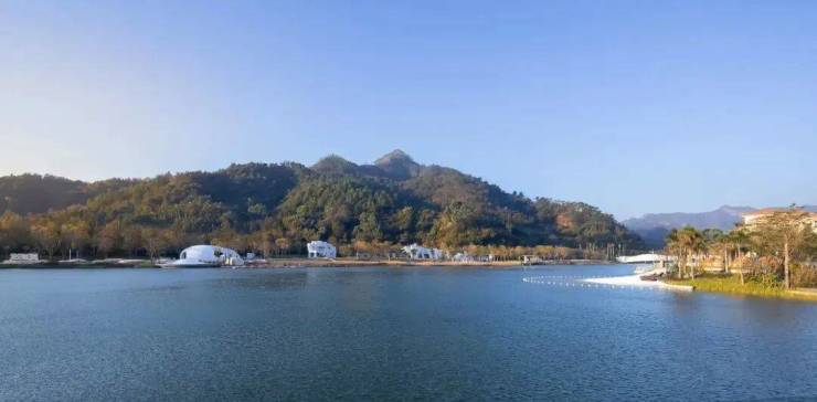 优美的山水田园画卷以及结合自然环境、人文景观等打造的新岭南建筑文化风貌,春沐·禾悦庄建筑风格在客家建筑、广府建筑、潮汕建筑文化基础上,采岭南园林江南园林等风格之长,形成了独具一格的新岭南建筑风格,湖泊,河流点缀其中,远山青烟袅袅。