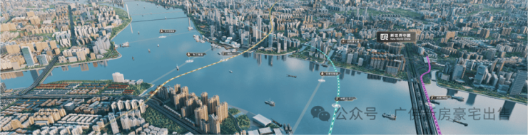自驾交通:白鹅潭CBD核心区百米范围,坐拥双大桥(珠江大桥、鹤洞大桥)、三隧道(珠江隧道、洲头咀隧道、如意坊隧道)如意坊隧道2024年4月开通后,可以说,这条隧道就是凯粤湾的私家隧道,5分钟上内环,畅达全城,15-30分钟内舒适通勤中心城区各个地方;