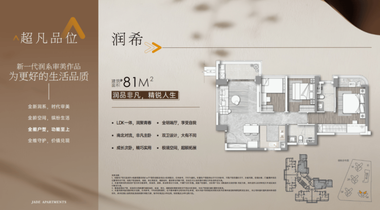 建面81平三房两卫,LDK一体化设计。可以做到三房带主套,还可将两间次卧打通实现两个大房间,主卧南北对流。