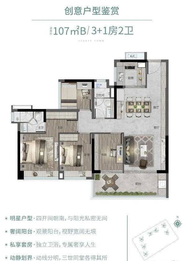产品:全南向 86㎡/107㎡/125㎡三至五房
