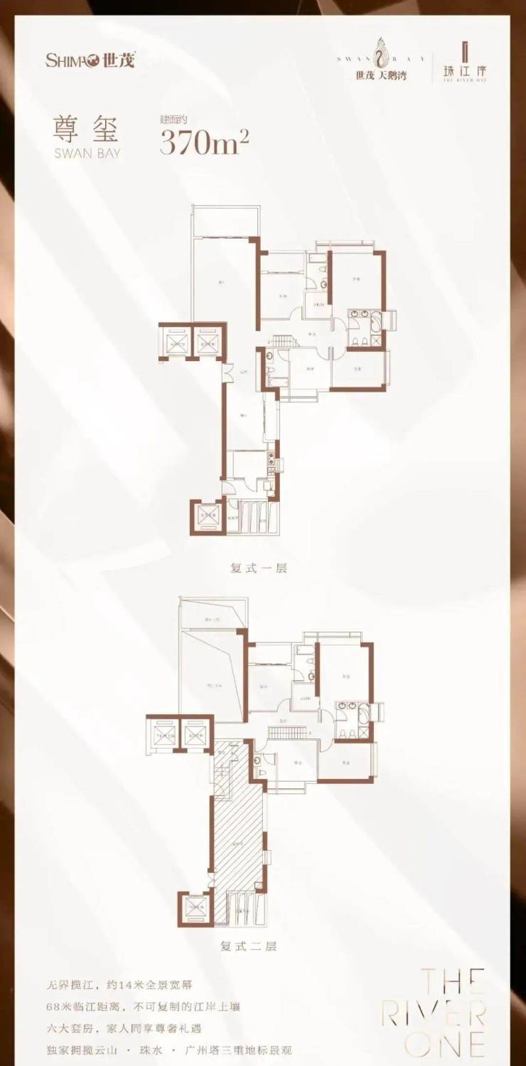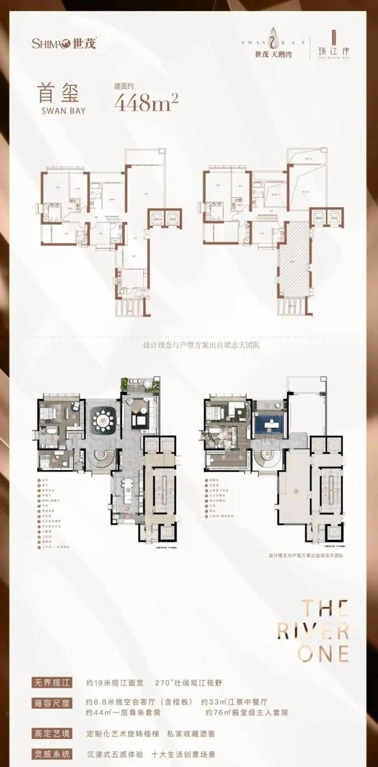 楼盘特色: 世茂天鹅湾·珠江序的设计由世茂集团携手知名设计团队完成,建筑外观典雅大方,内部则采用了大量的中国古典元素与现代设计理念相结合的方式,打造出独特的皇家山水园林景观。项目内设有六大国际会所,包括城市会客厅、私人俱乐部、泳池会所等,提供给业主们一个高端的生活体验平台。楼盘内推出的户型均为复式结构,面积从370平方米到448平方米不等,适合追求高品质生活的大家庭。