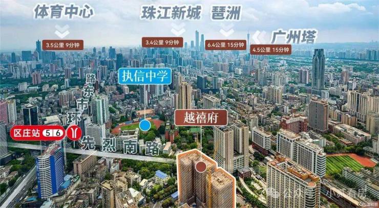 项目西侧就是执信中学,而且根据今年越秀区学位划分情况,项目大概率会被划分至建设六马路小学的招生范围。