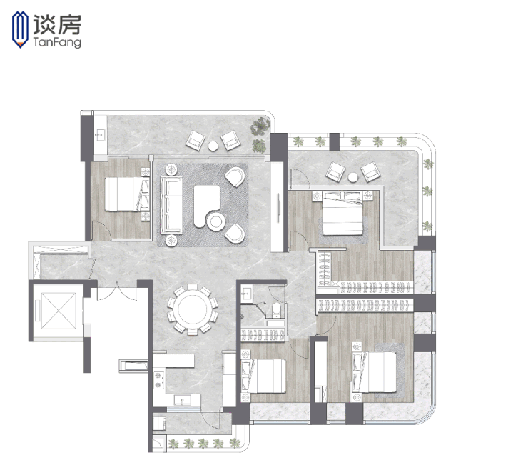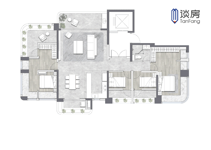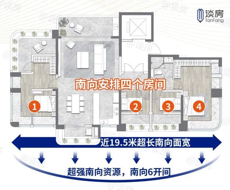 全屋打开南向6开间,实现近19.5米超长南向面宽,试问谁能拒绝满屋布满清风阳光。会呼吸的生活居所,使情绪价值一下拉满。