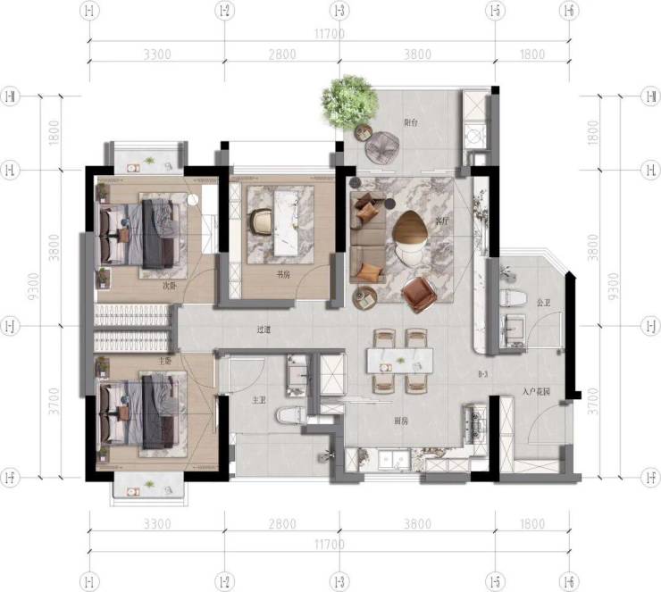 【B3 奢阔大平层 建面约89㎡ 三室两厅两卫】