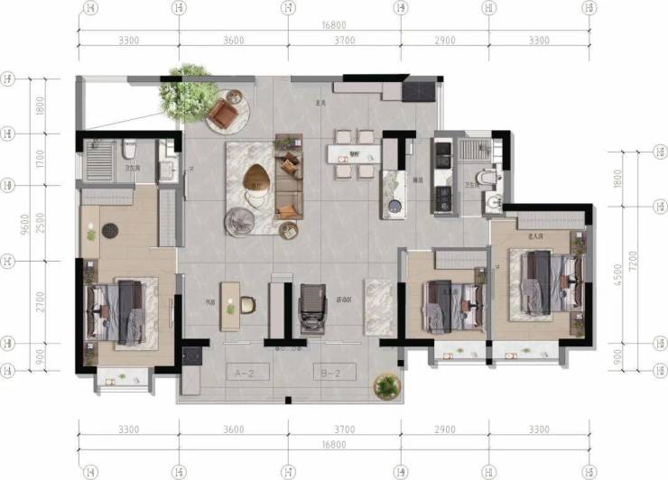 【A-2+B-2 大平层 建面约142㎡】