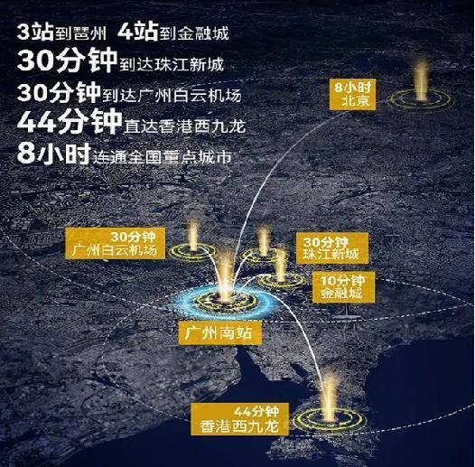 南站连续多年蝉联全国火车站年客流量第一,发客量达1.88亿人次,享12条轨道交通,4高铁+4城际+4地铁无缝链接大湾区及国内9省,中转接驳东南亚10国,尤其通过广深港高铁可47分钟直达香港西九龙ICC,实现互联互通。