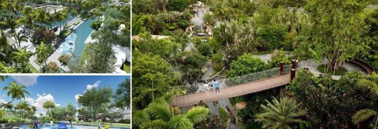 一二期交汇处,引水系为景观轴打造山谷花园,10米高差瀑布,吊桥、栈道、溪水等,营造和谐自然的活力休闲区。
