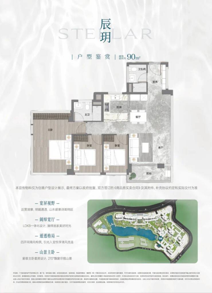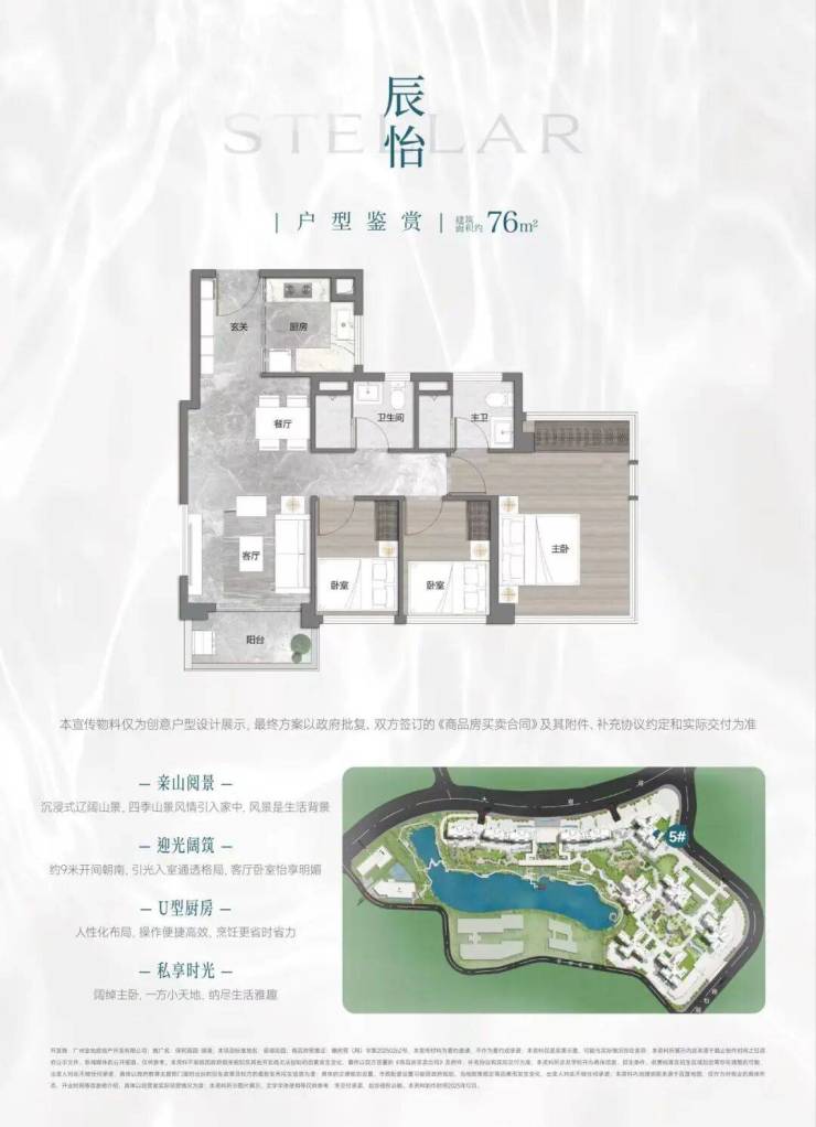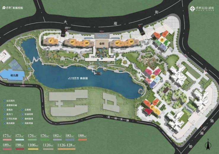 占地面积:约5.76万㎡、住宅建面约7.76万㎡、映辰湖约1.75万㎡环湖带;