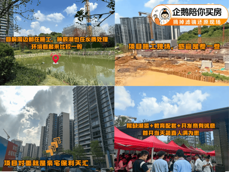 一线湖景:项目是天河东目前少有的低密度、低门槛湖景盘了,南侧有1.1万方映辰湖+600方绿地,距离不远处还有世界大观的月亮湖太阳湖。目前已经呈现出来了一部分景观,饭后在这里散步、遛娃还是非常惬意的。
