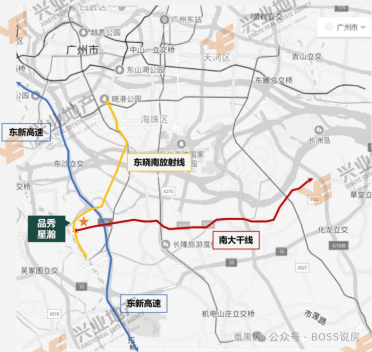 自驾方面,项目周边有已经开通的南大干线,建设中的东晓南放射线,和东新高速,南达广州主城区,北达广州南沙,佛山顺德,辐射范围非常之广;