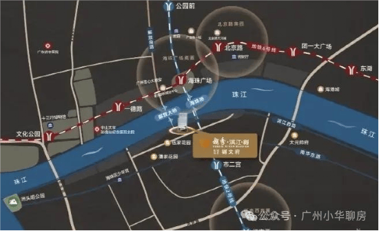 区位也非常显赫,位于海珠城央的滨江西路,且地处广州第一中轴,距离广州市政府的直线距离仅约1.9公里。