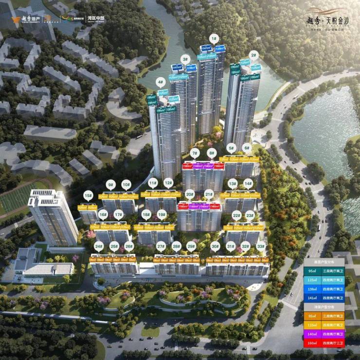 在售面积:小高层95㎡/125㎡三四房、超高层96㎡三房、138㎡/141㎡四房、底叠150-200㎡三四房