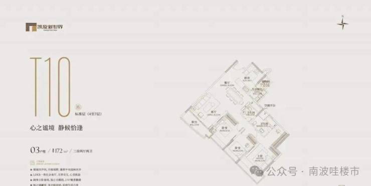 有172㎡、195㎡等多种面积。其中,172㎡的三房分布在t10、t26栋的3-9层,2梯3-4户,有三房两卫;195㎡的三房在t17栋的3-26层,2梯4户,有三房两卫。LDKB 一体化会客厅,朋友聚会超有面儿。