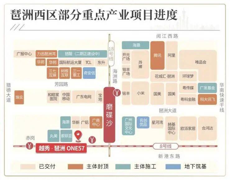 落位琶洲西区——华南总部企业聚集地核心,已引进阿里巴巴、腾讯、小米等总部企业超25家,计划到2035年超50家。(数据来源:广州日报)