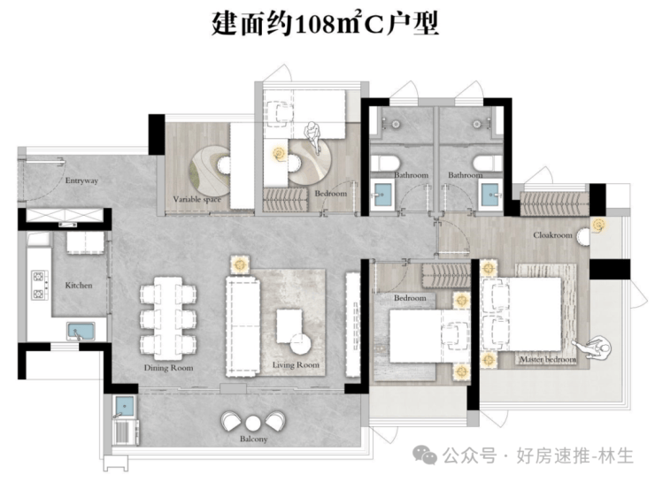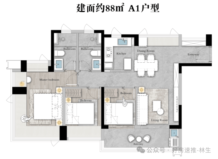 ●主卧独立套间,奢享私密生活