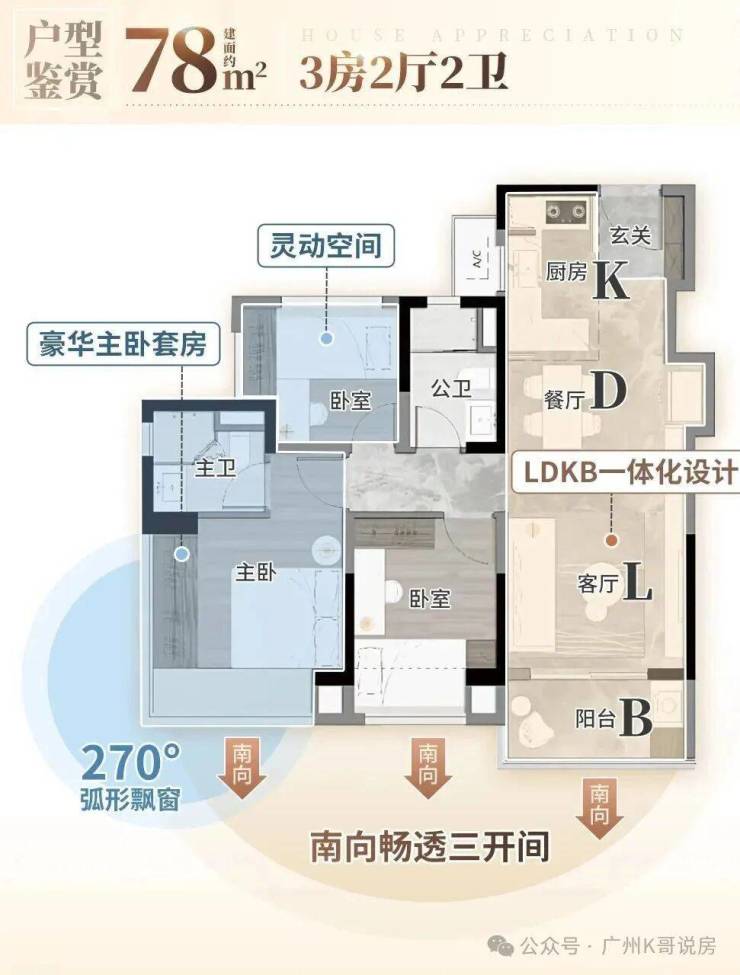阳台、飘窗、花池赠送,户型使用率超100%;
