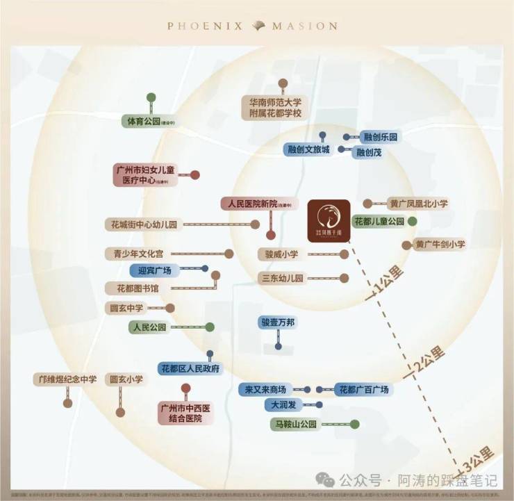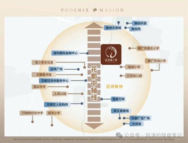 区府腹地:占位花都传统富人区,2km 内荟萃优质商圈、老牌名校、医疗及市政资源,寸土寸金。