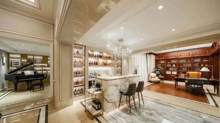 别墅的负一层则拥有阳光下沉式庭院,可打造成多功能会客厅、私人酒窖、影音室、会议室等多功能空间组合。