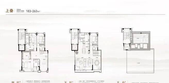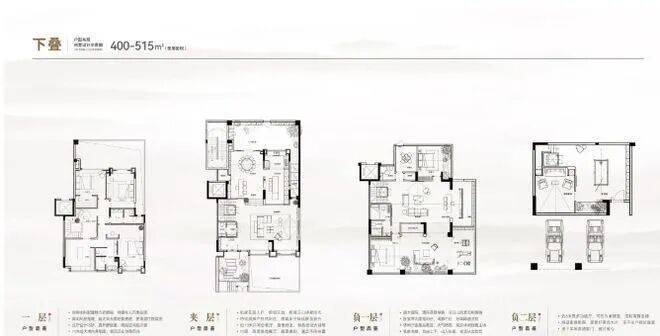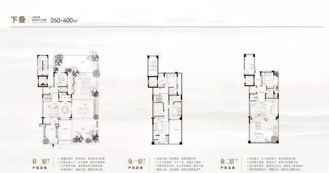 :户型多样,满足不同需求。180㎡大平层布局合理,空间开阔。叠墅产品中,上叠视野开阔,下叠亲近自然。较大面积的叠院如 260 - 400㎡,空间更具拓展性,可打造个性化居住空间,满足对品质生活和居住舒适度的追求。
