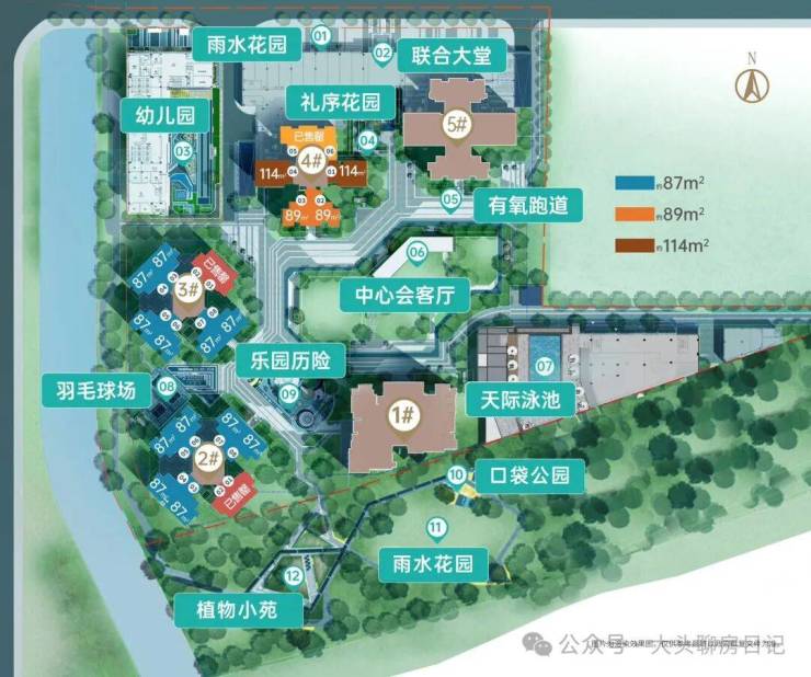 礼序归家动线迭加全龄活力乐园,社区建有天际泳池、有氧跑道、羽毛球场,儿童历险乐园、科普植物园、雨水花园等多元活动交流场所。