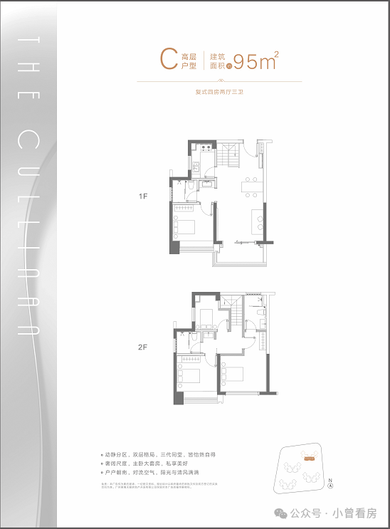 C户型:建面约95㎡复式四房两厅三卫