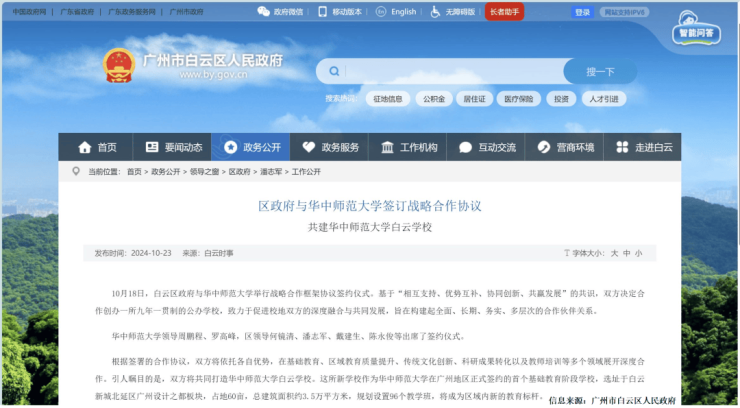 •项目内部规划配建一所九班幼儿园,西侧即华中师范大学白云学校。2024年10月18日,白云区政府与华中师范大学签订战略合作协议。双方共同打造华中师范大学白云学校,这所学校是华中师范大学在广州地区正式签约的首个基础教育阶段学校,选址正是在设计之都板块!(信息来源:广州市白云区政府官网,信息采集时间为2025年2月,最终以教育局当年入学政策为准)
