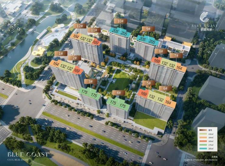 中间有8栋,为1、2、5、6、7、8、11、12栋,主打建面约132-164-168㎡户型;