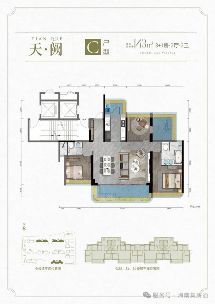 C户型: 建面约143㎡ 3+1房2厅2卫