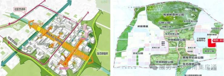 【一园】中央稻田公园为核心开放空间及中央轴心,政务组团、文化中心、体育中心等环绕