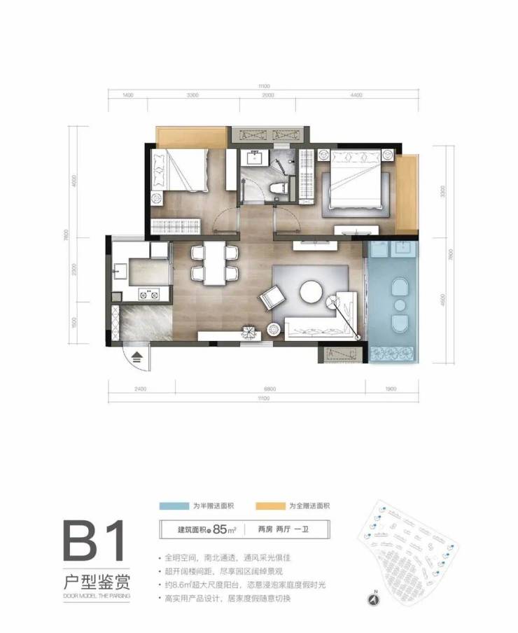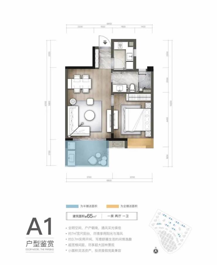 全明空间,户户朝南,通风采光俱佳约7㎡宽尺阳台,尽情享用阳光与海风 约3.7m实用开间,写意舒展生活的闲情逸趣 超宽楼间距,尽享超大园林景观 小面积灵活资产,投资度假完美兼容。