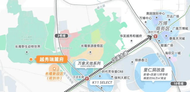 项目位于长隆度假区旁,右边就是万博,早期万博已经升级扩容,瑞麓府不仅能享受长隆万博CBD的利好之外,还能享受顶级商业和文旅资源,地理位置都是比较不错的,